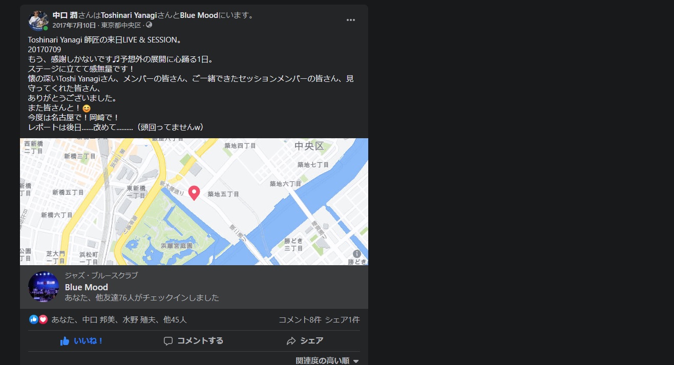 2017年7月10日 · 東京都中央区 · Toshinari Yanagi 師匠の来日LIVE & SESSION。 20170709 もう、感謝しかないです♬予想外の展開に心踊る1日。 ステージに立てて感無 … Blue Mood 2017年7月10日 · 東京都中央区 ·