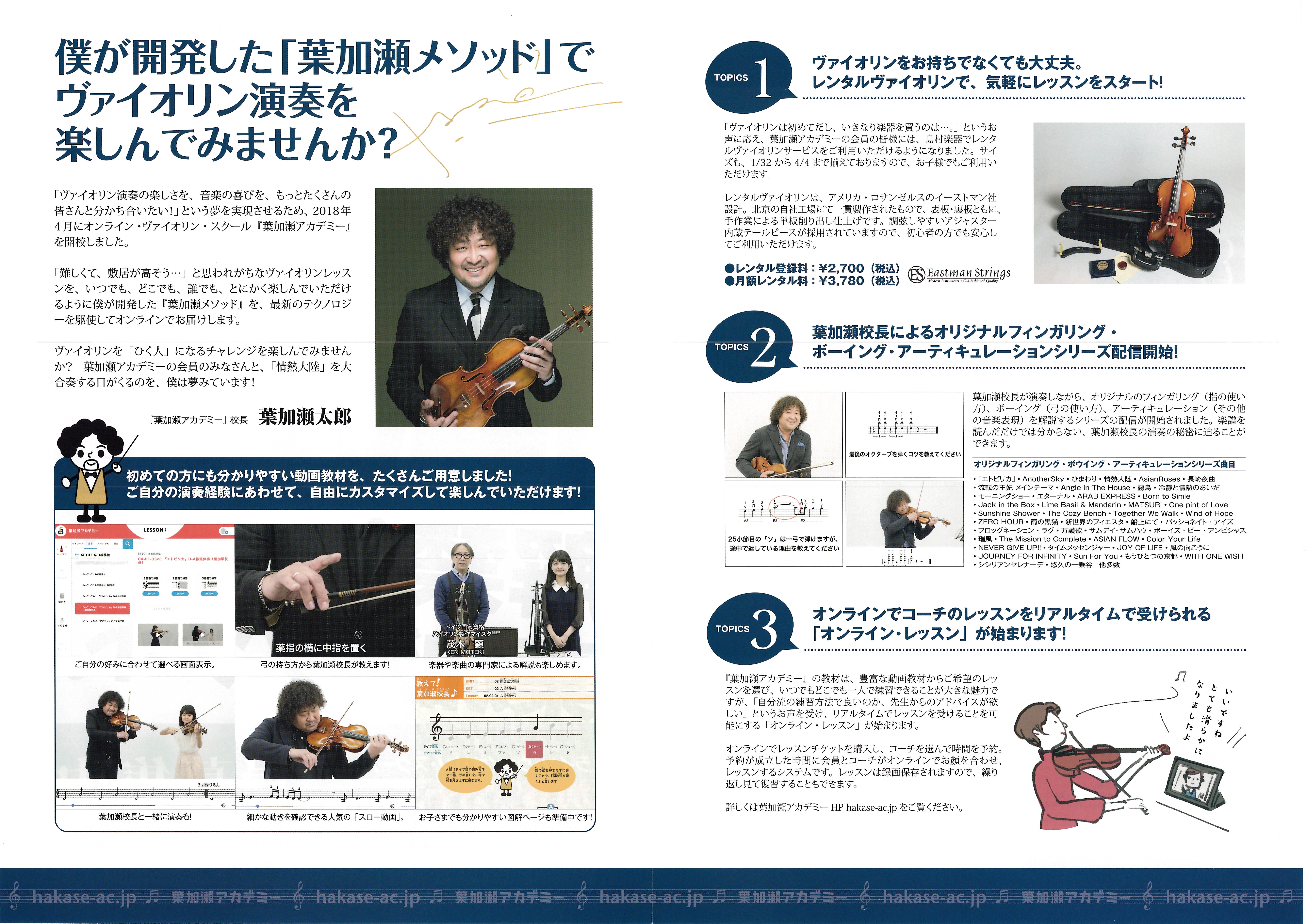あんな演奏を見てしまうと、18万円の葉加瀬太郎シグネチャーモデルのバイオリンを弾けもしないのに 買ってしまいそうな僕ww その昔、社員として働いていた会社から発売ww わかる気がするww ま、先立つものがな … 葉加瀬太郎さんのLIVE フライヤーなど。葉加瀬アカデミー入ろうかしらんww