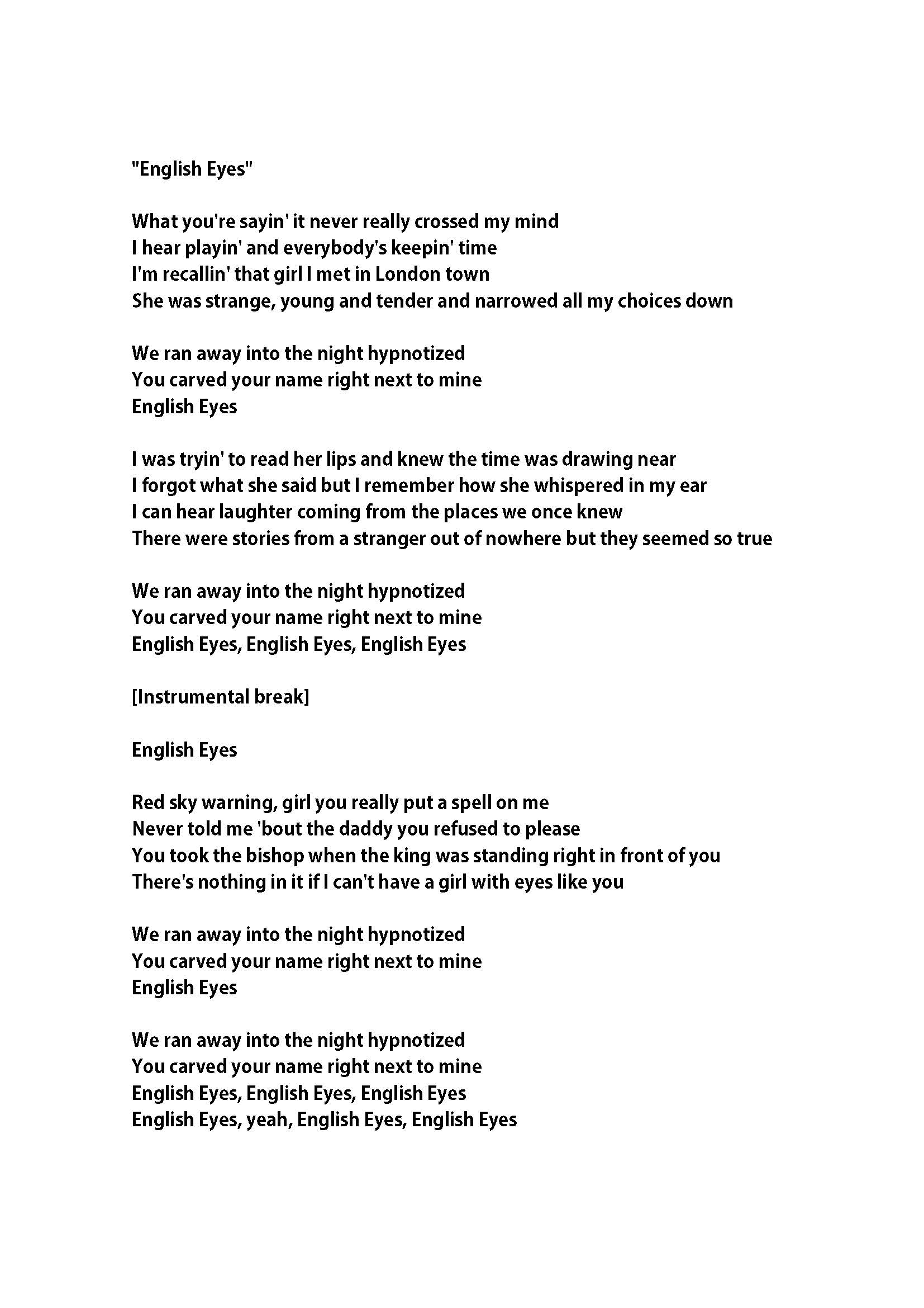 English Eyes What you’re sayin’ it never really crossed my mind I hear playin’ and everybody … English Eyes