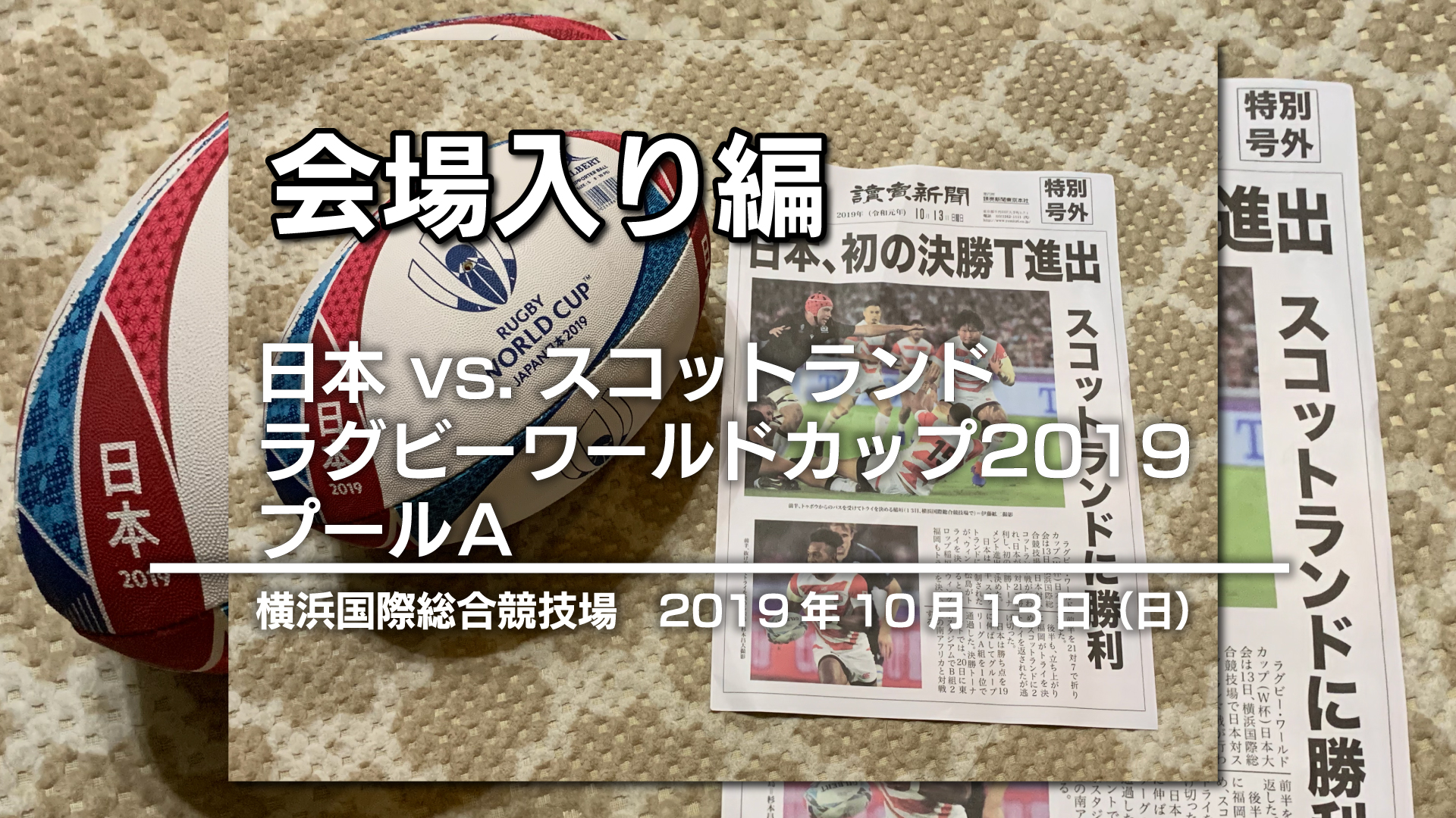 先ほどの続きです。 興奮冷めやらぬ13日の日本・スコットランド戦。 記録|VICTORY編です。 試合そのものやトライ集などは本家本元のコンテンツをお楽しみください。 こちらは「記録」的な動画です。 YouTube 記録 … 記録|VICTORY編|日本 vs. スコットランド ラグビーワールドカップ2019 プールA|2019年10月13日